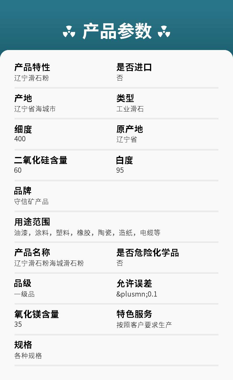 - 产品名称:辽宁滑石粉(海城滑石粉)